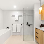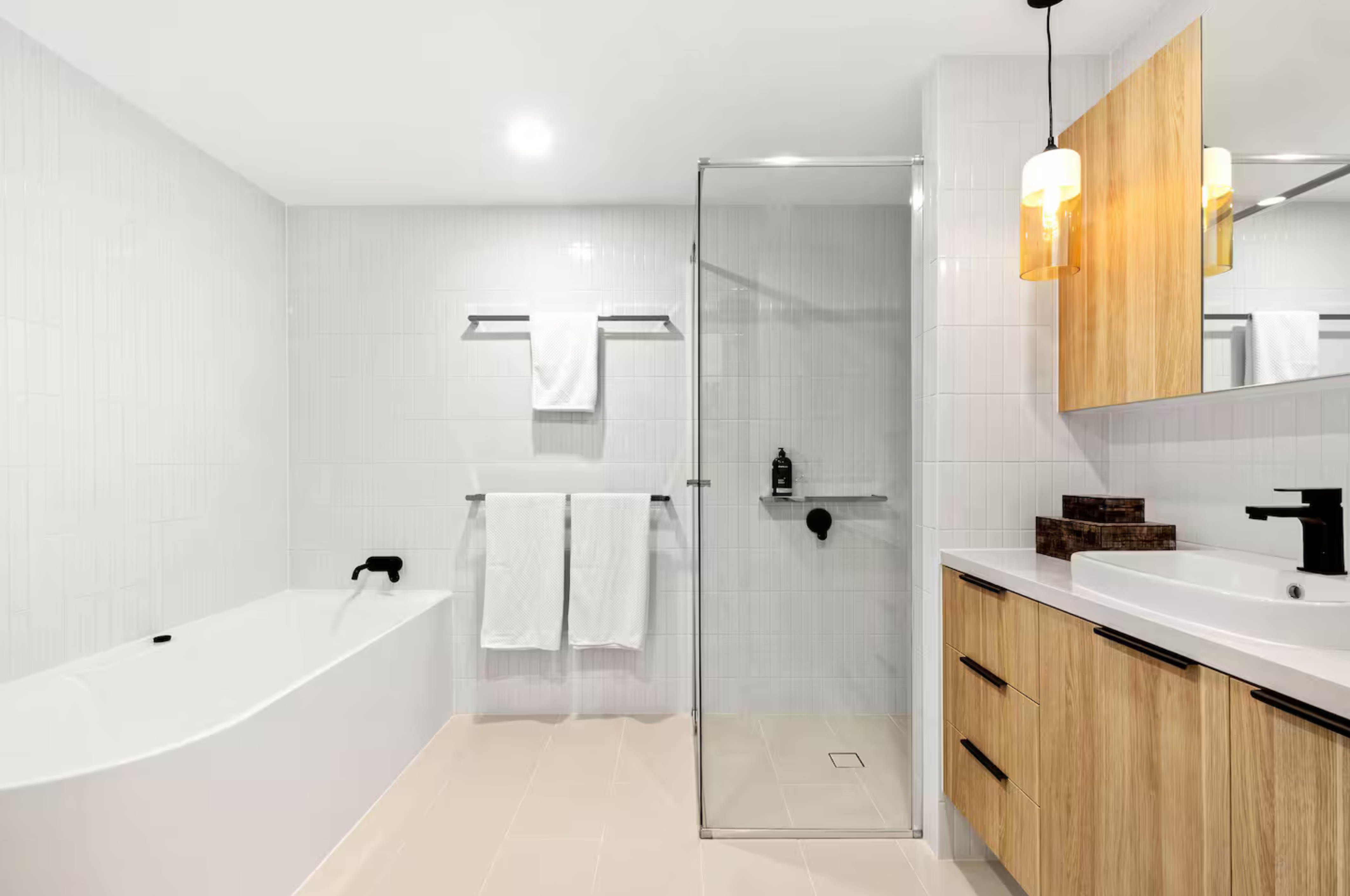 The master suite and second bedroom are positioned on opposite sides of the apartment offering great separation with the central living space. The master features a built-in robe providing plenty of shelving and hanging space as well as a stylish ensuite and ample storage. Bedroom 2 is also a great size and is serviced by the main bathroom complete with feature soaking tub and separate shower.