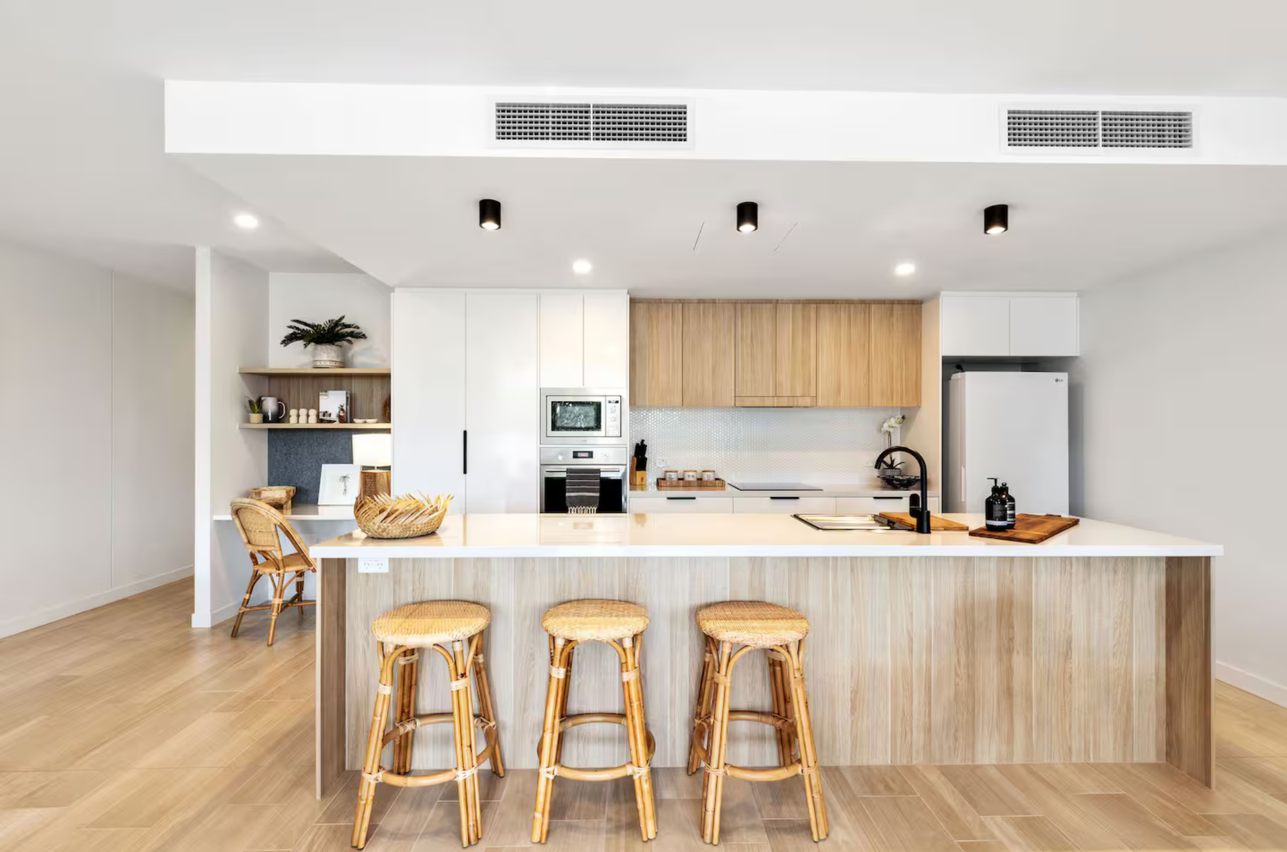 The large outdoor courtyard area offers a comfortable private space to take in the relaxing Sunshine Coast lifestyle and enjoy the water views across Cotton Tree Park . Relax with a glass of wine and enjoy the gentle sea breezes which circulate throughout keeping you cool on even the warmest Queensland summer day.