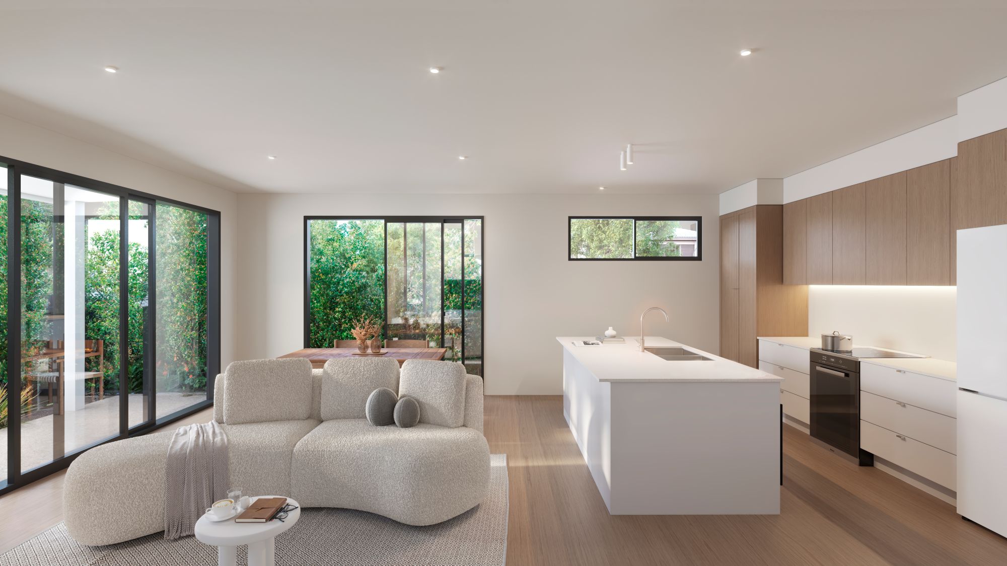 • Open-plan living & dining flowing to private outdoor courtyards